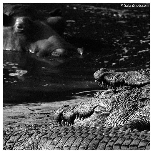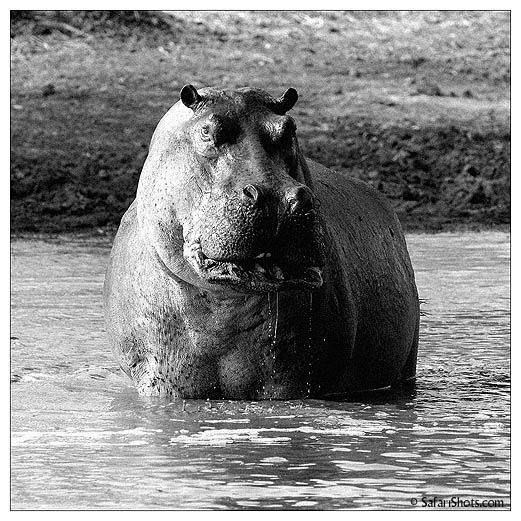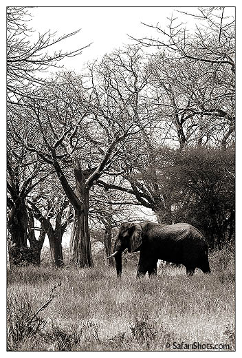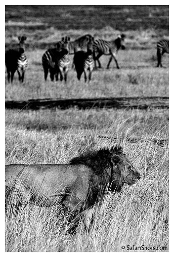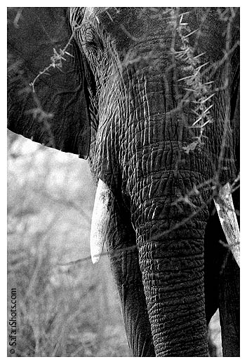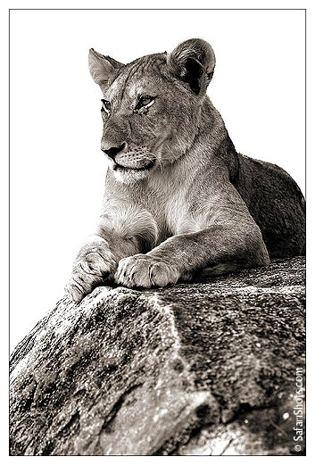 However, about half of the people who saw the photo interpretted the shading with the light source on the opposite side. They saw shadows being cast by foot-shaped mounds of sand. Some even asked, how did you get the footprints to raise up like that?" The problem was that there was nothing else casting a clear shadow in the photo to correct their unconscious decision about where the sun was. The fact that morning and evening light cast deeper shadows helps to convey another important photographic idea, texture. Black and white photography particularly emphasizes texture because there is no color to distract the viewer's attention from the small shadows that make it apparent. Animals have interesting textures. Fur, feathers, and scales can seem more touchable in black and white. The photos below work, in my opinion, because they convey a sense of 3D-ness and texture. Giving a black and white photo a touch of sepia (as in the last two photos) makes a photo warmer, and perhaps gives it a more natural feeling. All photos taken with Nikon D2X.